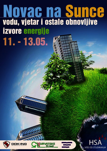Hrvatska studentska asocijacija (HSA) organizirala je projekt pod nazivom "Novac na Sunce... vodu, vjetar i ostale obnovljive izvore energije". Projekt je trajao od 11. do 13. svibnja, a osmišljen je kao svojevrstan odgovor na sve prisutnija pitanja o brizi za okoliš i obnovljive izvore energije u javnosti. Posjetitelji su imali prilike saznati sve o važnosti odgovornog ponašanja prema okolišu, upotrebi obnovljivih izvora energije, i mogu?nostima koje nude ulaganja u obnovljive izvore energije. Konkretnije, kroz sama predavanja bilo je nešto više rije?i o elektri?nom automobilu - prvom hrvatskom automobilu, predstavljena je maketa obnovljivih izvora energije i niskoenergetskih ku?a, te su posjetitelji mogli ?uti vrlo zanimljiva predavanja na teme: "Investiranje u obnovljive izvore energije" (DOK-ING - Marko Tisovec), Niskoenergetske ku?e - primjena obnovljivih izvora energije u ku?anstvu (Jasna Lanovi? Janda, dipl.ing.arh.), "Korištenje vjetra za dobivanje energije" (Edo Jerki?), i "Korištenje Sun?eve energije kao zamjena fosilnim gorivima" (Ljubomir Majdandži?). Na predavanju pod nazivom "Korištenje vjetra za dobivanje energije" prisutni su mogli ?uti više o vrstama vjetroagregata, njihovim primjenama i prednostima, mitovima o negativnom utjecaju na okoliš, te trenutnom stanju razvoja tehnologije i upotrebi u svijetu, ali i u Hrvatskoj. Koli?inom postavljenih pitanja predava?u Jerki?u pokazao se veliki interes prisutnih za trenutno stanje i budu?i napredak iskorištavanja energije vjetra u Hrvatskoj, kao i mogu?nosti privatnih ulaganja u male vjetroagregate. Predavanje na temu "Korištenje Sun?eve energije kao zamjena fosilnim gorivima" održao je Ljubomir Majdandži?, vlasnik prve fotonaponske elektrane priklju?ene na elektroenergetsku mrežu u Hrvatskoj. Na predavanju su prisutni mogli ?uti nešto više o iskorištavanju energije sunca, njezinoj prednosti u odnosu na fosilna goriva, napredku solarne i fotonaponske tehnologije, te trenutnom stanju u Hrvatskoj.