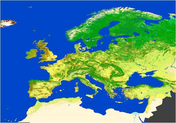 Slika 1. Karta razli?itih tipova pokrova u Europi – nastala procesuiranjem satelitskih snimaka Unato? napretku u EO tehnologiji, preciznost tradicionalnih, zemljanih, metoda ne može se nadomjestiti. Upravo radi toga optimalan na?in procjene potencijala biomase je kombiniranje obiju metoda. Podatci dobiveni na temelju EO mjerenja mogu osigurati veliku koli?inu informacija, a zemljane metode mogu pružiti vrijedne dodatne informacije. Mjerenja na temelju uzorkovanja mogu pružiti informacije o prosje?noj gusto?i biljaka i o raspoloživosti biomase po pojedinoj biljci. Kada se ove informacije kombiniraju s informacijama o ukupnoj površini koja je pokrivena pojedinim tipom vegetacije mogu?e je procijeniti ukupnu raspoloživu koli?inu vegetacije i biomase. Procjena trenutno prisutne biomase nije dovoljna za utvr?ivanje potencijala biomase koja se može upotrijebiti. Tehni?ka ograni?enja mogu onemogu?iti sakupljanje na pojedinim podru?ja kao što su na primjer strme padine ili nedostupna šumska podru?ja. Isto tako u nekim slu?ajevima trošak sakupljanja biomase može biti ve?i od prihoda koji se može ostvariti korištenjem prikupljene biomase, što ponovo umanjuje stvarnu raspoloživost biomase za korištenje. Podru?ja koja su zašti?ena nacionalnim ili me?unarodnim zakonima mogu imati propisane odredbe o zabrani sakupljanja vegetacije, a u nekim slu?ajevima korištenje biomase može znatno narušiti biološku ravnotežu. Sva ovakva ograni?enja umanjuju ukupnu koli?inu biomase koja je raspoloživa za bioenergetske potrebe. Na temelju procjene ukupno raspoložive biomase za sakupljanje mogu? je procijeniti koli?inu energije koja se može dobiti korištenjem te biomase. Svaki tip biljke može proizvesti odre?enu koli?inu energije ovisno o na?inu proizvodnje. Kada se ova vrijednost umnoži s koli?inom potencijalno raspoložive biomase mogu?e je izra?unati ukupnu koli?inu raspoložive bioenergije.